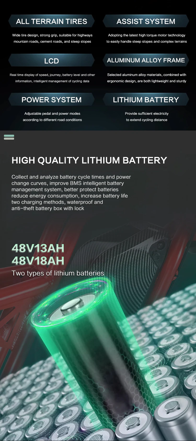Battery: Lithium Battery, 48v 17.5ah lithium battery, 48v 22.4ah