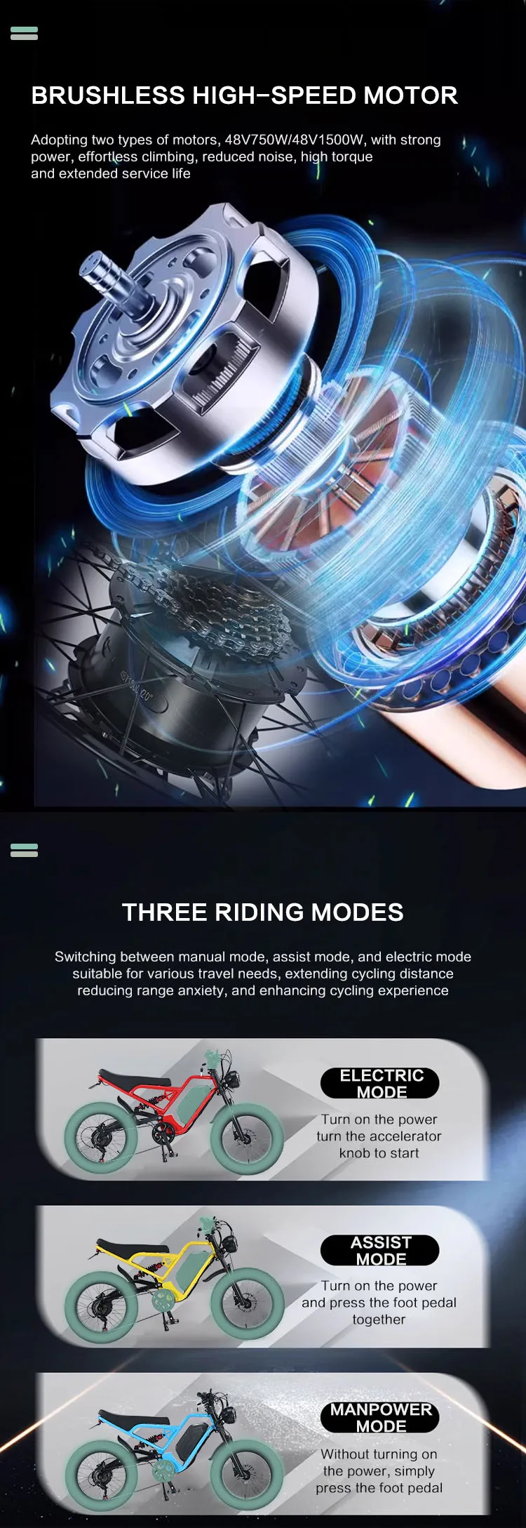 Motor Power: 750-1000w, 1200-1500W, 48V1500W/ 52V1500W